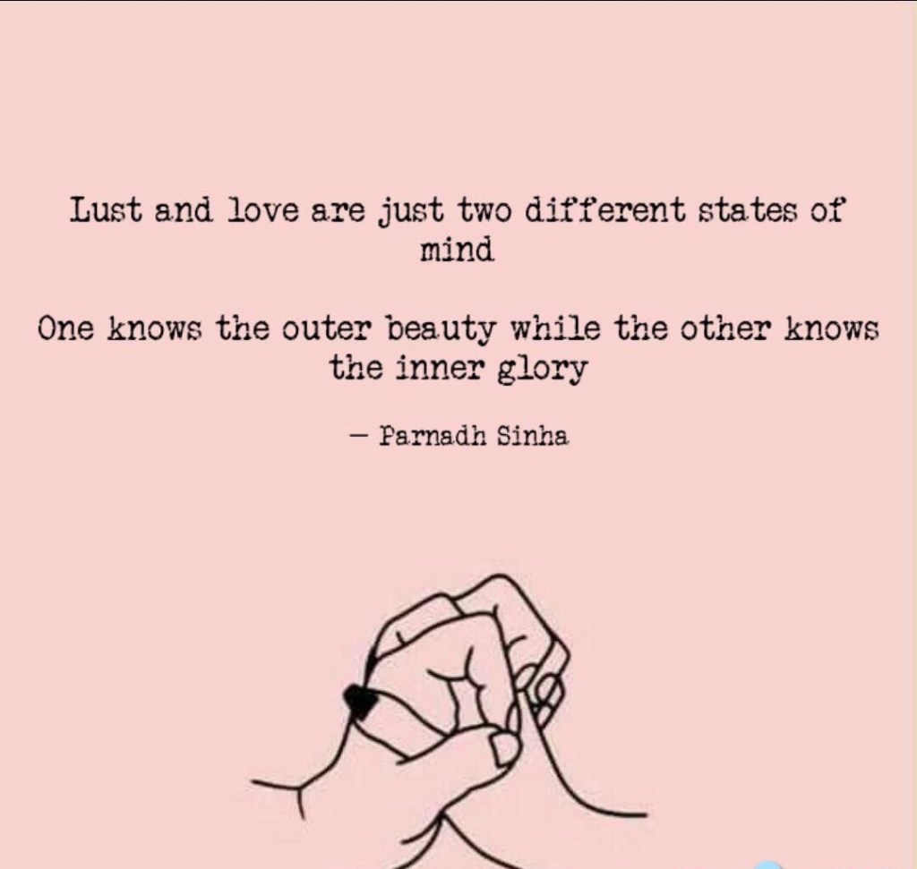 Before you fall for someone ask yourself is it love or is it lust? Don’t go after a person just because they look good. Get to know them real good so you don’t end up with someone that only serves looks. Don’t worry there are also people that don’t look as good and will also break your heart. Moral of the story is just love yourself because you already look good and know what you need, so what’s the issue? I say sit at your own table alone Lust is having a very sexual desire for someone. Love is unconditional affection with no limits or conditions. You’ll know it’s lust when it’s based on sex and once y’all stop having sex, it’s like the love is gone. But in fact it was never a soulmate, just a soul tie. A soul tie is based on sex and will have you thinking it’s love when it’s not. This is why I love my God, He loves people unconditionally and with no limits.
